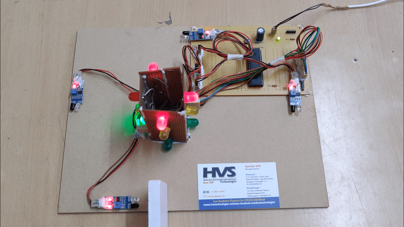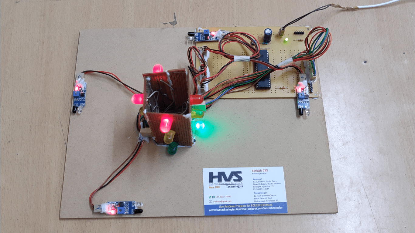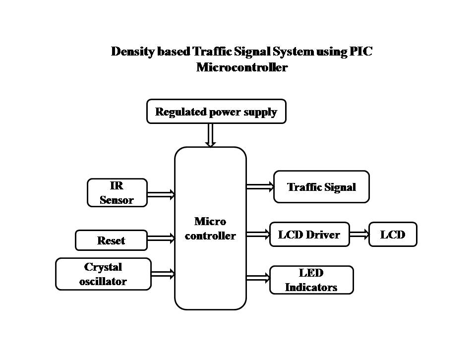 The project aims at designing an intelligent traffic control system which is capable of estimating traffic density using IR sensors and then counts the number of vehicles with the help of IR sensors. The system makes use of IR sensors and High power LED‘s as traffic lights and microcontroller.