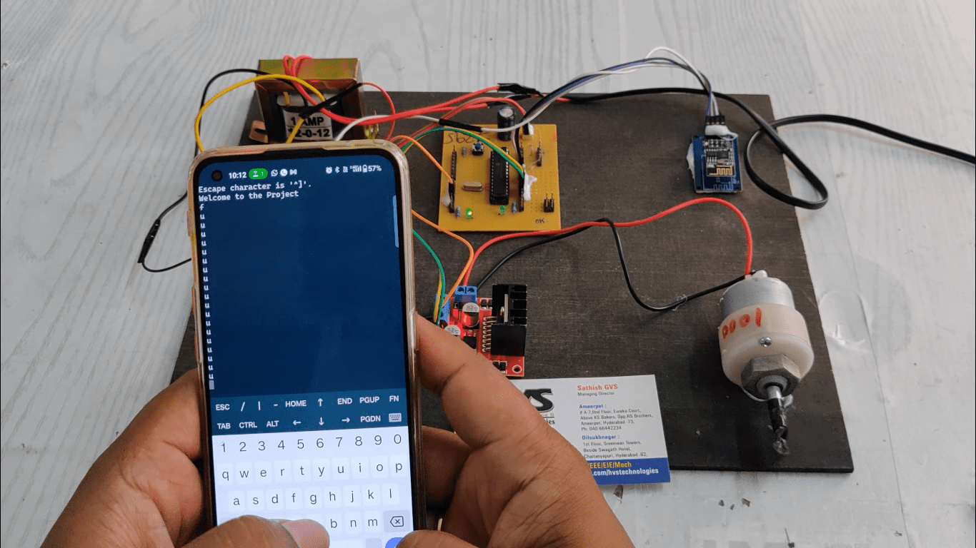 The main controlling device of the whole system is microcontroller. DC motor along with driver and Wi-Fi module is interfaced to the microcontroller. When the user presses the buttons on his mobile phone, this data is received by Wi-Fi module and take the appropriate action on DC motor. In achieving the task, the controller is loaded with a program written using Embedded ‘C’ language.