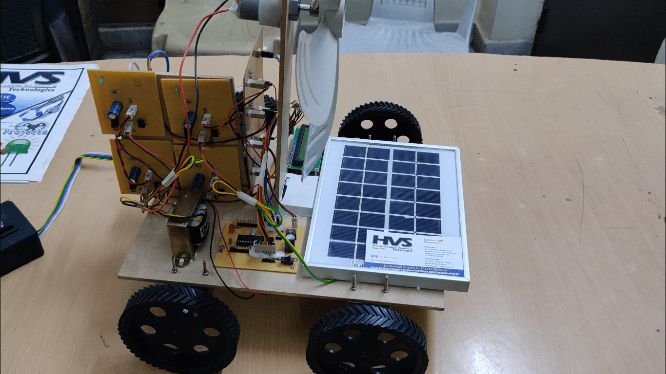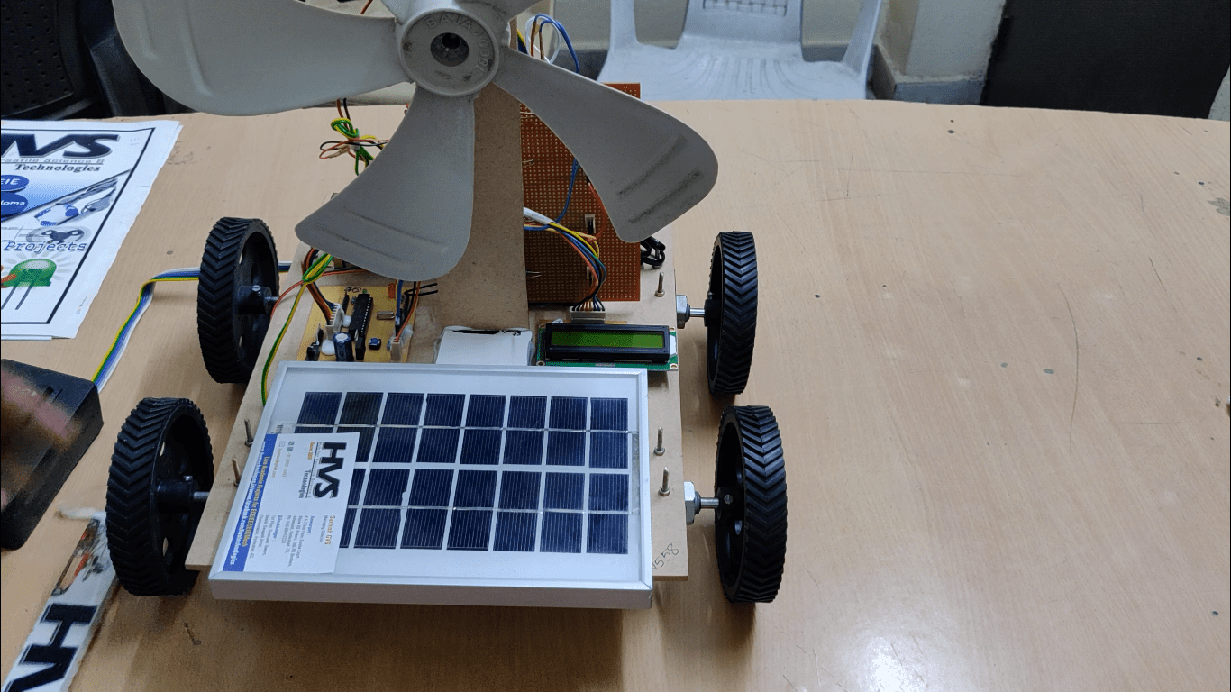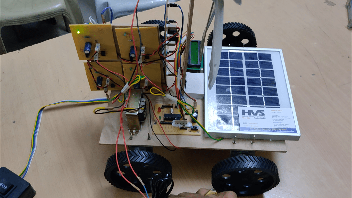 The project makes use of a wind turbine, a dynamo and solar panels. The combined energy obtained from non renewable resources is stored to a battery. The battery supply is fed to dc motors of vehicle which are controlled by the microcontroller. The amount of voltage obtained is displayed on LCD.