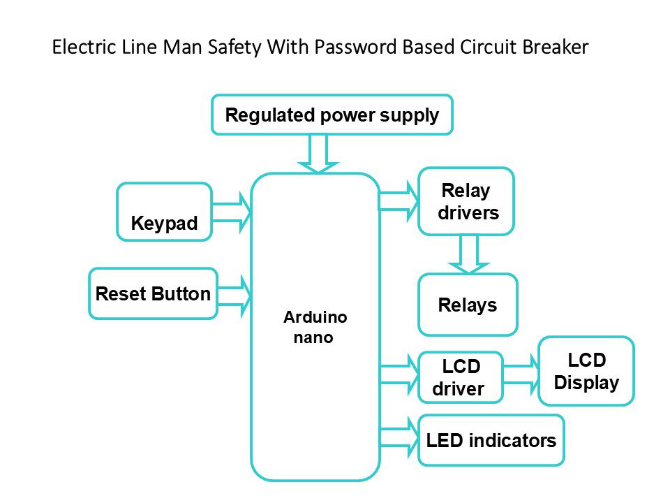 The project is designed to control a circuit breaker by using a password for the safety of electric man. Critical electrical accidents to line men are on the rise during electric line repair due to lack of communication and co-ordination between the maintenance staff and electric substation staff.