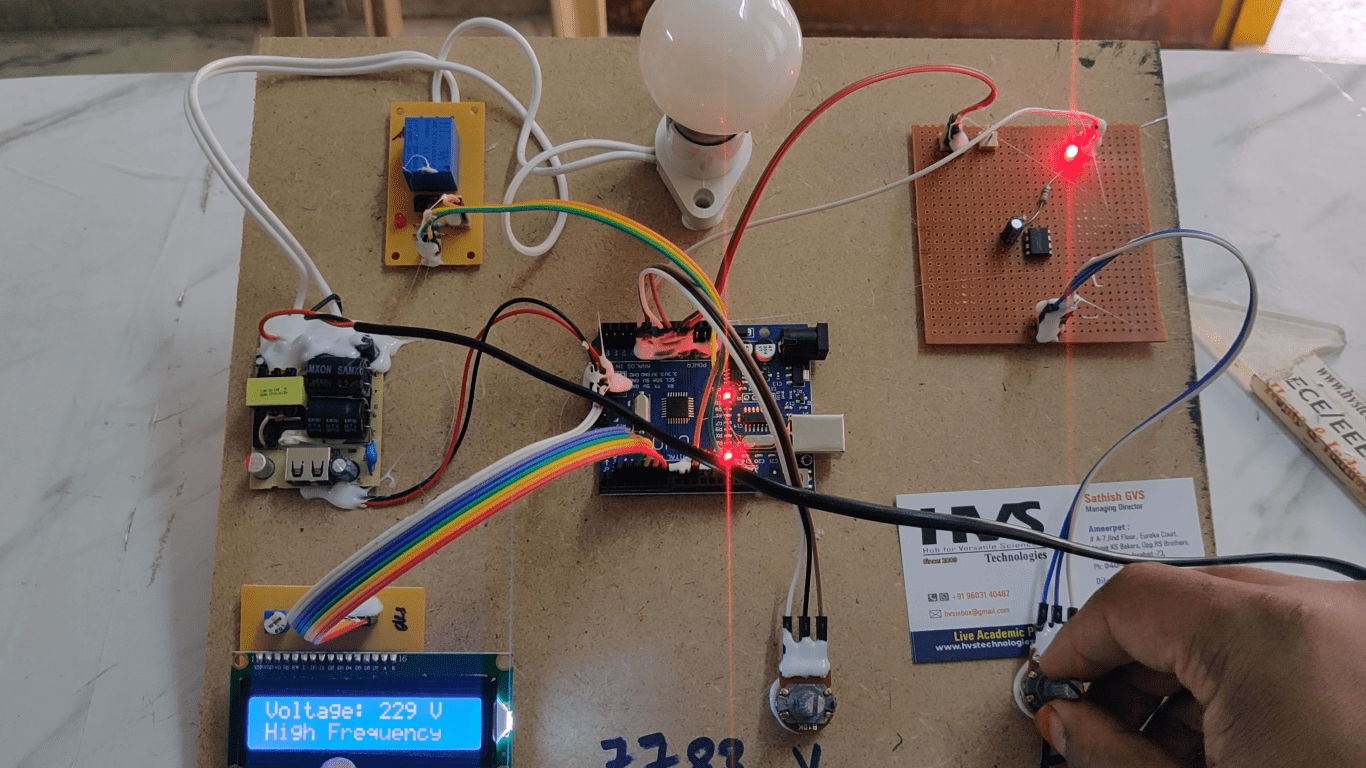 HVS-2699.Power grid Failure detection based on sensing frequency and voltage variation using Arduino UNO