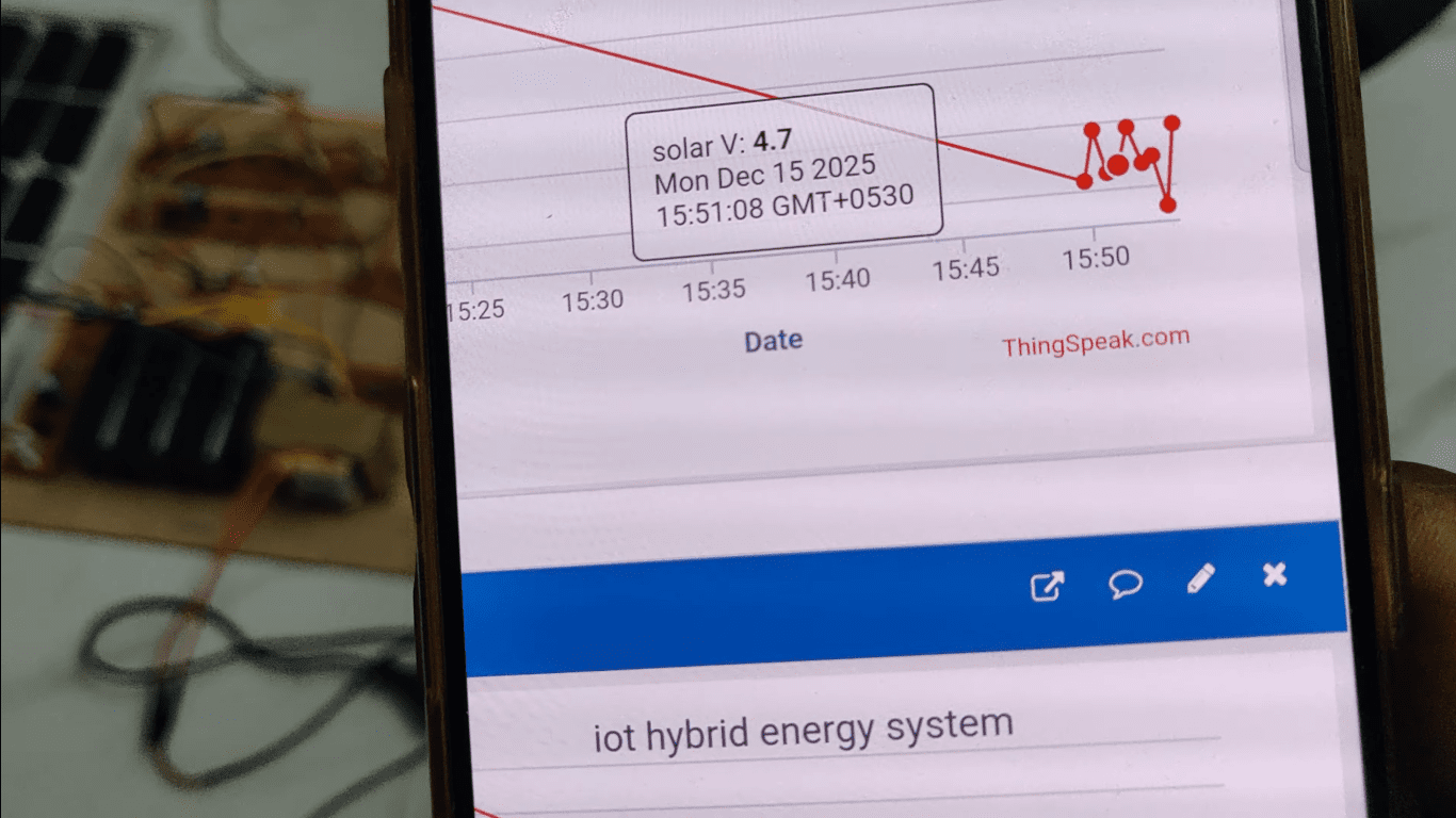 Based on the measured parameters, the microcontroller intelligently controls the power flow to the load using Pulse Width Modulation (PWM) by using MOSFET, ensuring maximum energy extraction without compromising load performance. The system operates both under no-load and load conditions, and real-time voltage data is displayed locally on an LCD. Additionally, system parameters are uploaded to the ThingSpeak cloud platform through an ESP8266 Wi-Fi module, enabling remote monitoring and data analysis.