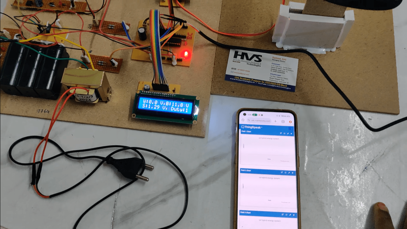 The hybrid solar–wind configuration improves energy availability, reduces dependence on conventional power sources, and ensures continuous power supply in regions with limited grid infrastructure. The proposed system is cost-effective, environmentally friendly, scalable, and suitable for standalone renewable energy applications. The embedded control logic is developed using Embedded C programming, making the system reliable and efficient for real-time operation.