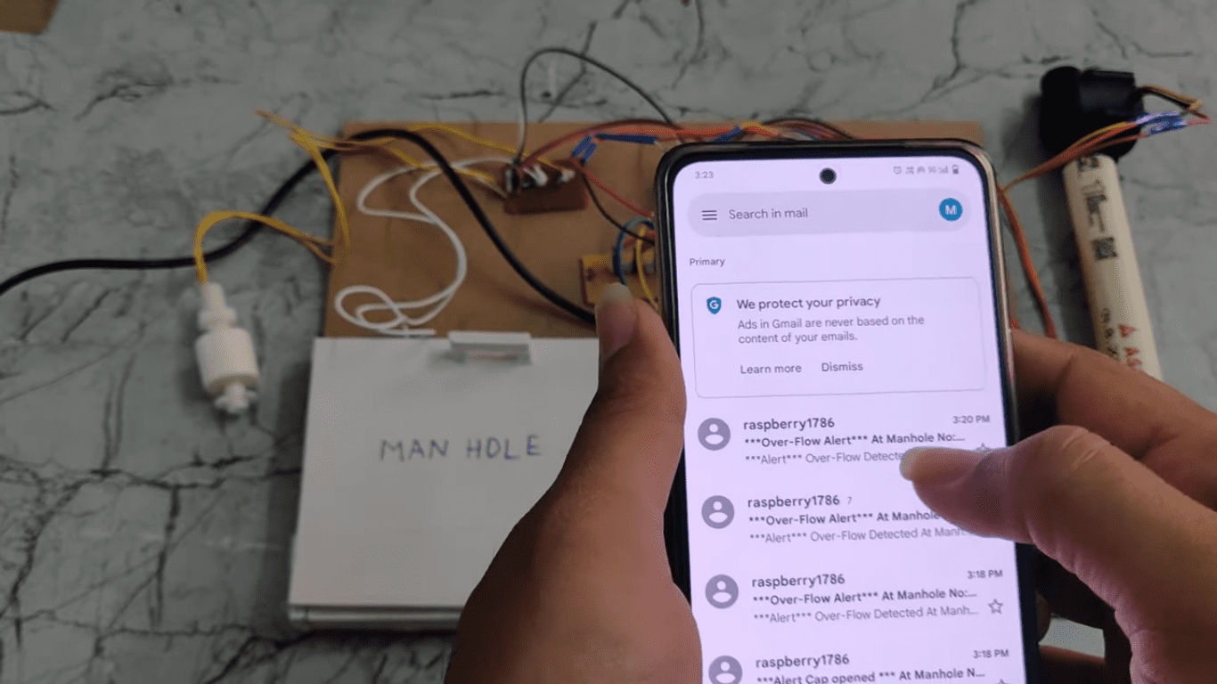 HVS-3022. Manhole management system using Raspberry pi and Email Alerts.