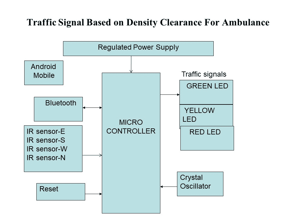 Whenever driver finds more traffic in the moving route, he will send message to the Bluetooth module which is connected to micro controller with android mobile that will be given to the microcontroller which changes the traffic signal according to the message from RED to GREEN by running embedded programming.