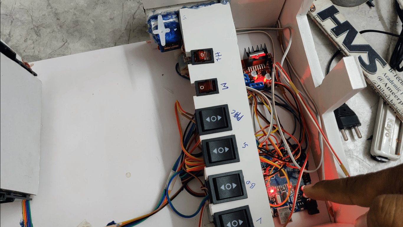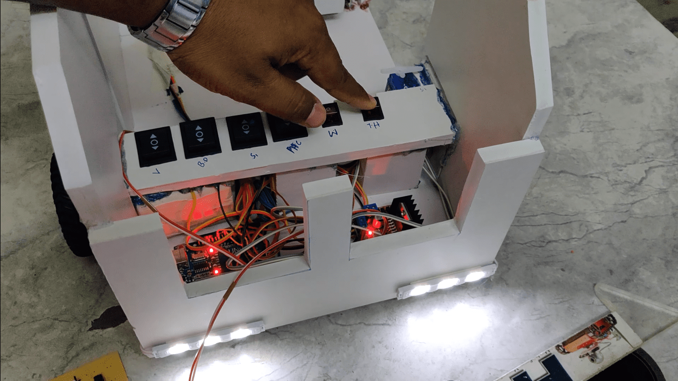 The controlling device of the whole system is An Arduino UNO Microcontroller. Switches, servomotors, DC motos, head lights are interfaced to the Microcontroller. By using switches diver can control the bus movement, PHC seat, back door and had lights. The Microcontroller is programmed using Embedded C language.