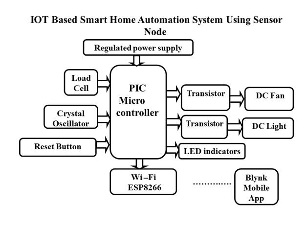 The main controlling device of the project is PIC microcontroller. Load cell,DC fan,along with transistor, DC light along with transistor and esp8266 wi-fi module are interfaced to the microcontroller. The system is implemented using ordinary household appliances controlled from blynk app and data sent to the microcontroller, the microcontroller in turn ON the devices and regulate the fan speed also control the light intensity accordingly.Microcontroller will continuously read the weight of cylinder and sending the mail alert when the gas level goes behand the setlimit.The microcontroller used is esp8266 Wi-Fi module and the communication between the microcontroller and the blynk mobile application via Wi-Fi (Internet). The Microcontroller is programmed by using embedded C language such that it is capable of performing the task of the project.