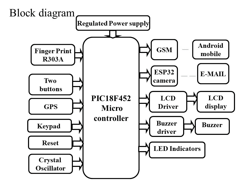 To access the door user, place the finger-on-finger print module. If it is valid microcontroller will send the OTP to the user mobile through GSM. User need to enter the password through keypad. Once the OTP is entered by the user, the controller checks the received code with the generated code. If it is matches, this system will access the door to let the person in. If it is not valid, Microcontroller will capture the person image and sending to the mail and trigger the buzzer for alerts and also sending alert SMS along with home location to the house owner and police station. The status of the project will display on LCD module.