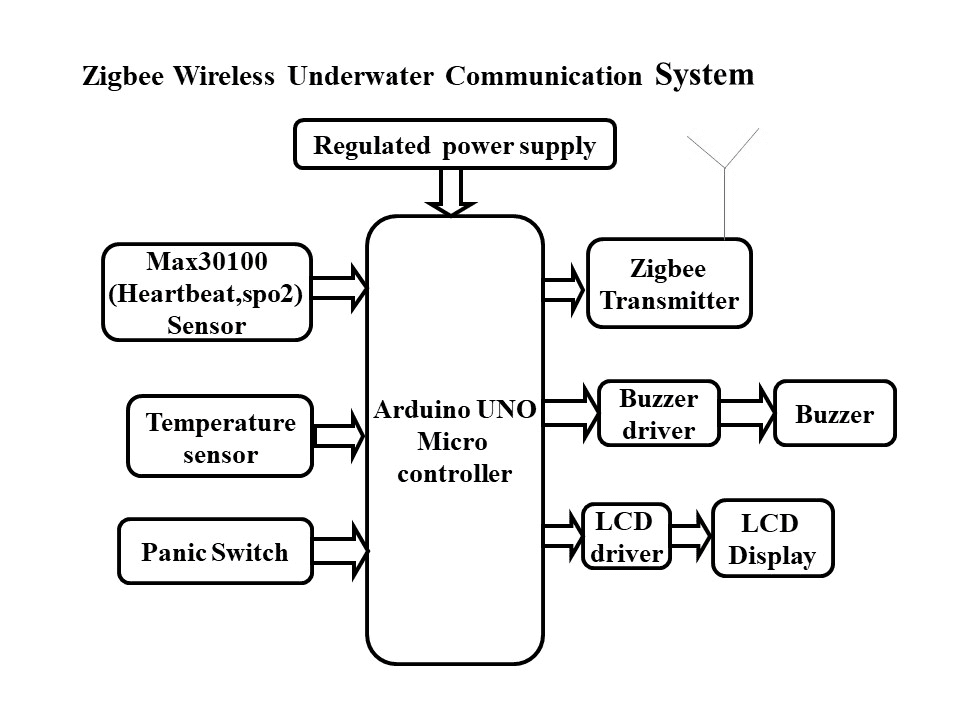To overcome this problem, we develop a zigbee based underwater communication system. This might be equipment chiefly intended for this purpose, or equipment intended for other purposes which is found to be suitable for diving use