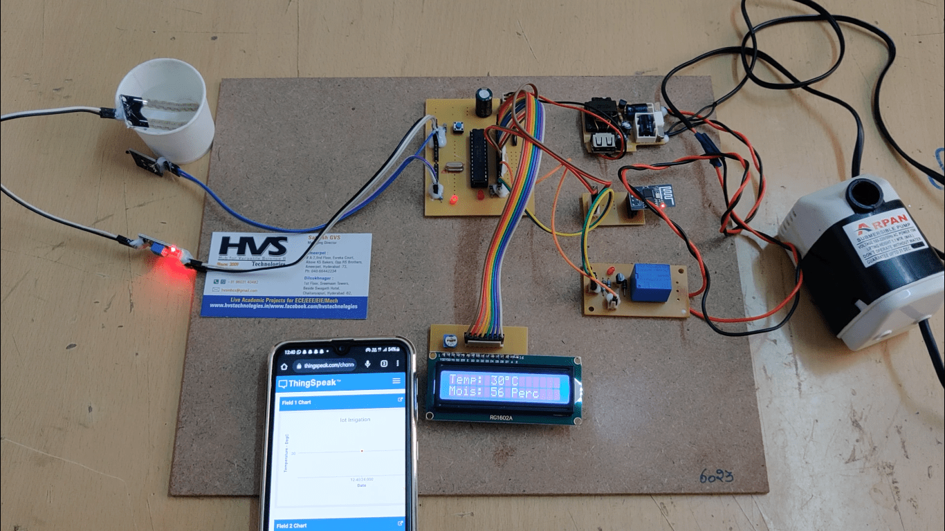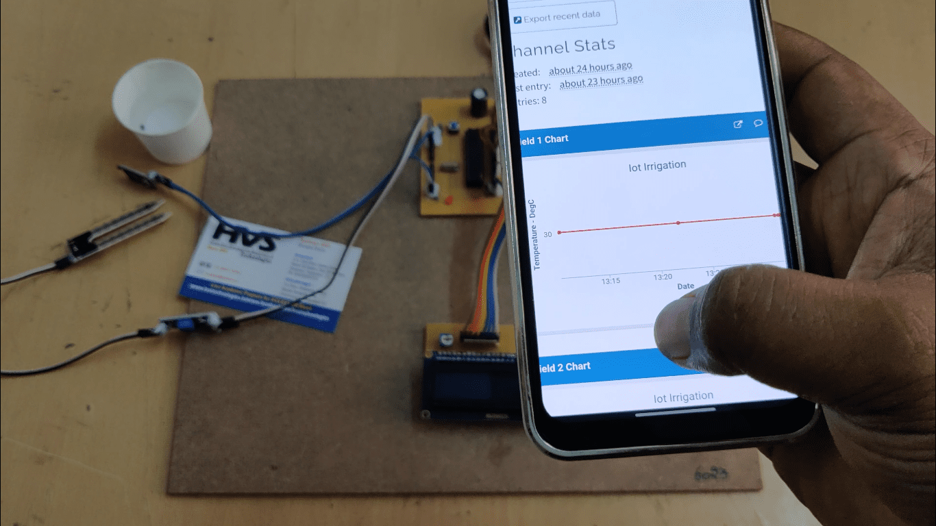 HVS-3385. IoT based Soil Moisture and Temperature Automatic irrigation system - Thingspeak