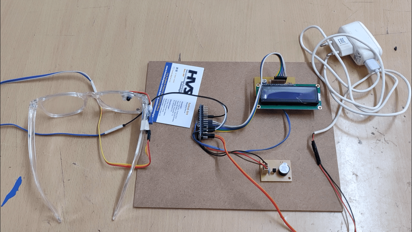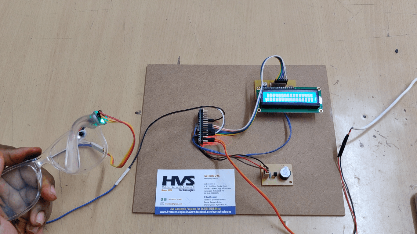 ARDUINO NANO, Buzzer, Eye blink sensor, LCD