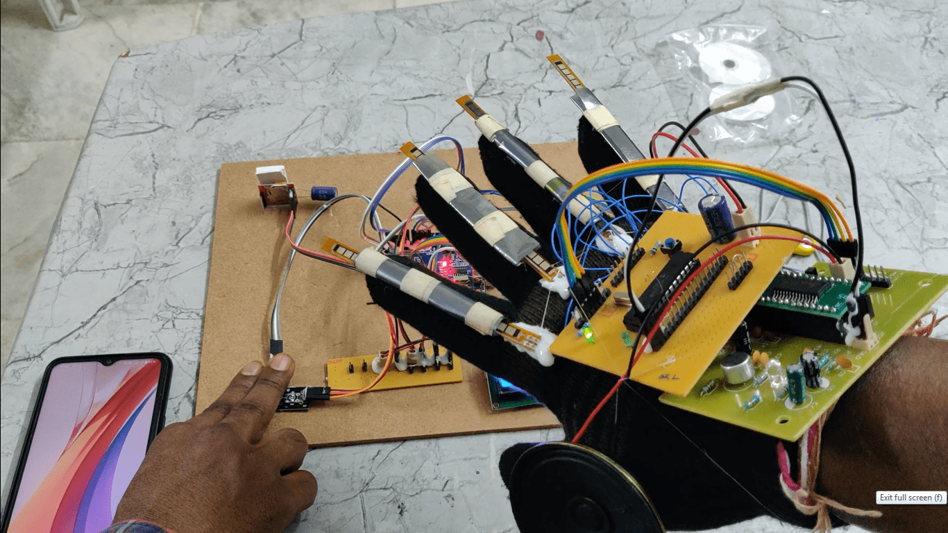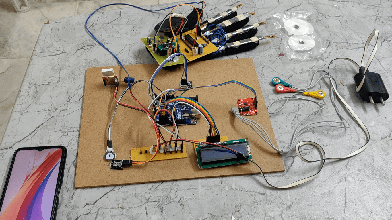 - Flex sensor-based voice announcement of basic needs.