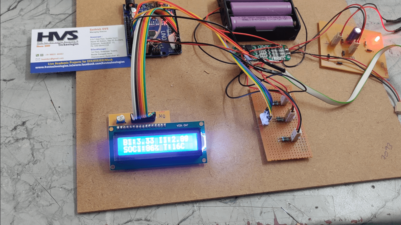 Real-Time Data Display: To integrate an LCD display with an Arduino microcontroller for real-time visualization of critical battery data, including voltage, current, temperature, and charge status, providing valuable information for the user and enhancing battery management.
