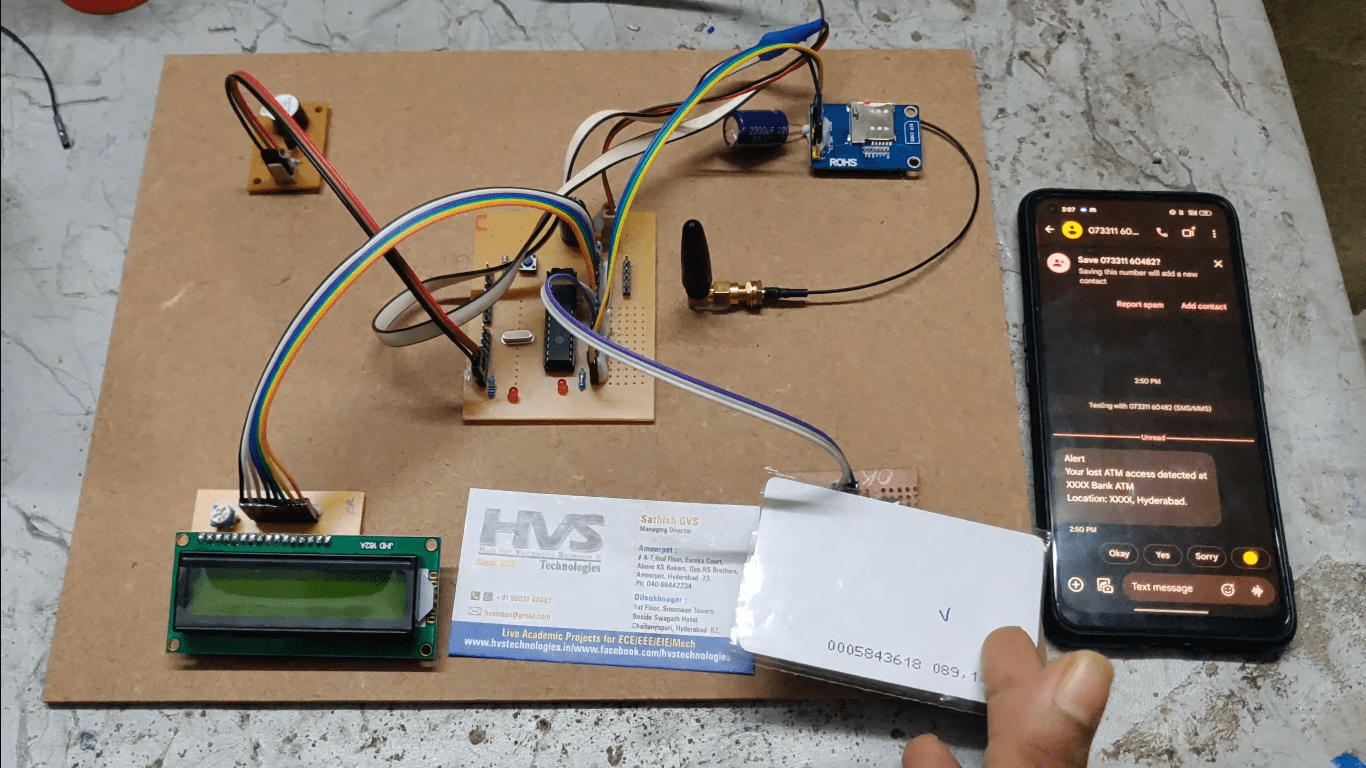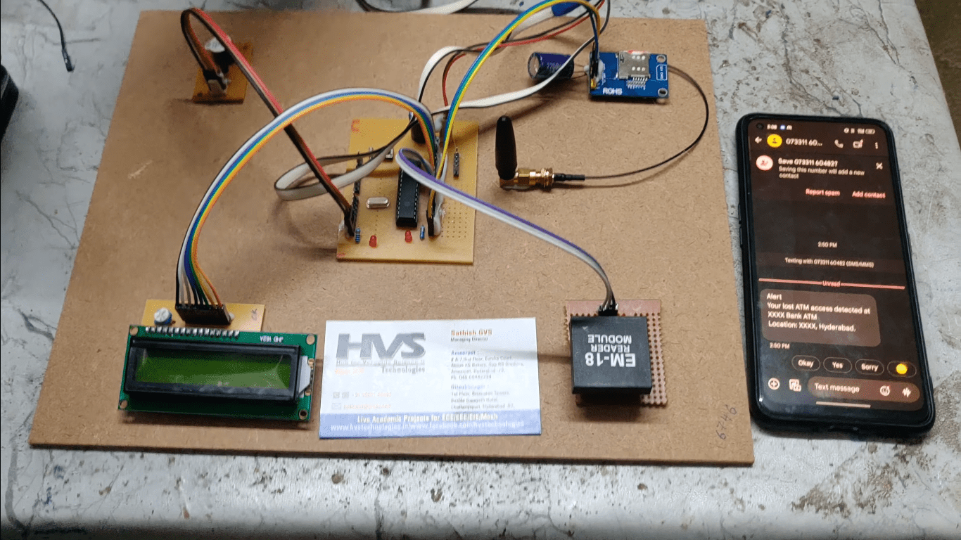 The controlling device of the whole system is a Microcontroller. GSM modem, Buzzer and RFID reader are interfaced to Microcontroller. The Microcontroller Send the messages to the GSM modem and continuously monitors the input from RFID reader. If theft card detected, it automatically sends a predefined message to predefined number along with horning the buzzer. Also, the location information is displayed on the LCD display.