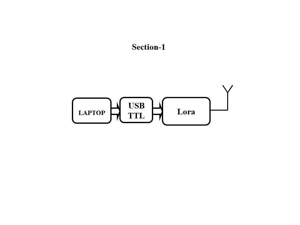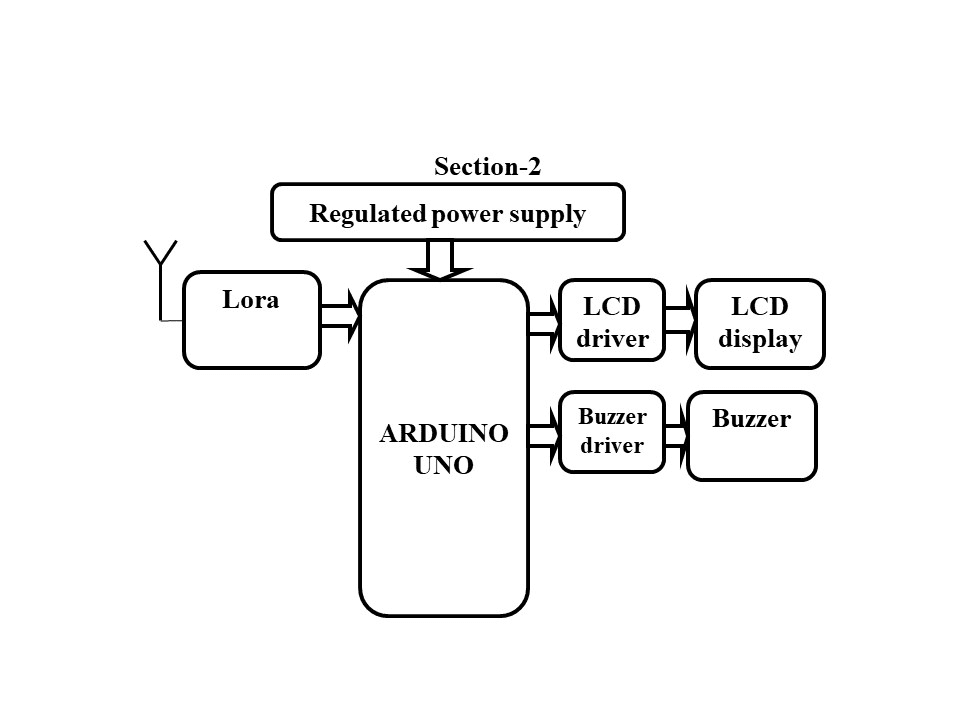 The controlling device of the system is an Arduino UNO Microcontroller. This system consists of two sections. Section one consists of LoRa with Laptop and USBTTL. Section two consist of LCD display, LoRa module, LCD, buzzer and arduino are interfaced. The Microcontroller is programmed in such a way that the message typed by using pl2303 application in laptop will be processed through Lora module which will be received by the LoRa. This received data is processed by the controller and displayed on the LCD screen along with Buzzer. The Arduino UNO Microcontroller is programmed using Embedded ‘C’ language.