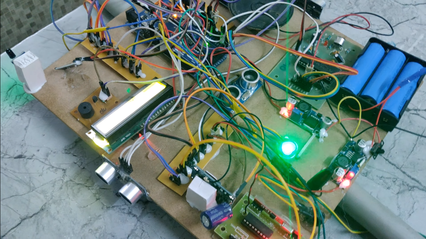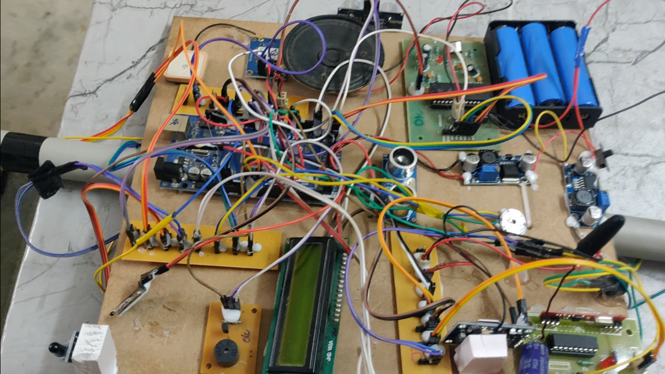 The Smart Blind Stick is an advanced assistive device designed to enhance the mobility and safety of visually impaired individuals. This innovative stick integrates multiple sensors and technologies to provide real-time feedback and alerts, ensuring a more secure and informed navigation experience.The stick is equipped with three ultrasonic sensors that detect obstacles at different heights and distances, alerting the user through a buzzer and an LCD display.