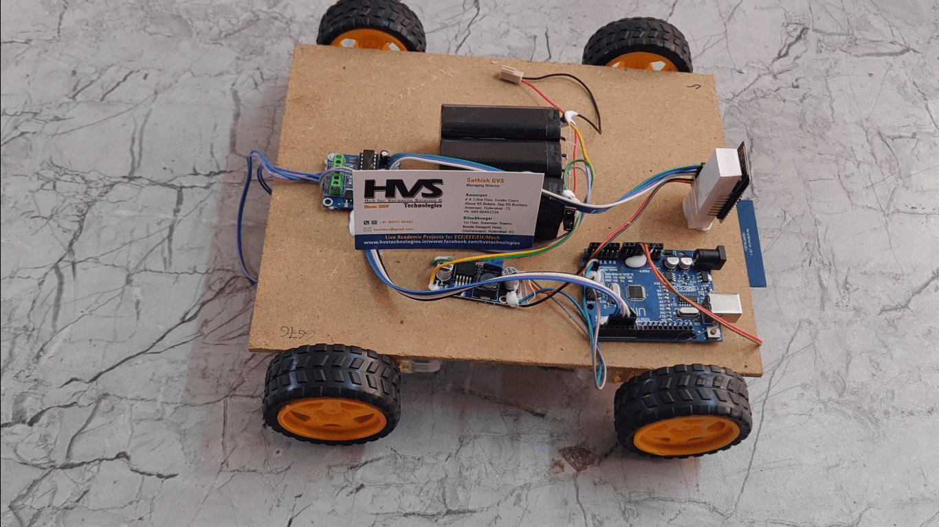 The robot can perform multiple application such as if any bombs are placed at public places this robot acts as a bomb detector robot using the metal detector sensor and alerts though buzzer. The robot can be detecting the obstacles and stop the robot automatically.