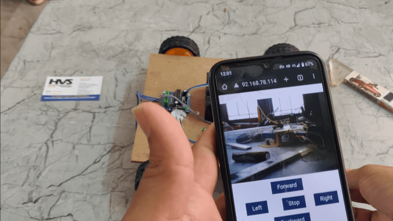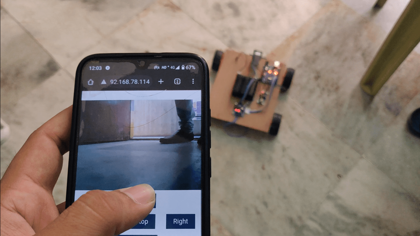 The robot movement can be controlled by the user by using android smart phone. This robot consists of esp32 camera which can be uses to send the live video to the user mobile over IOT. While seeing the video use can control the robot from web browser.