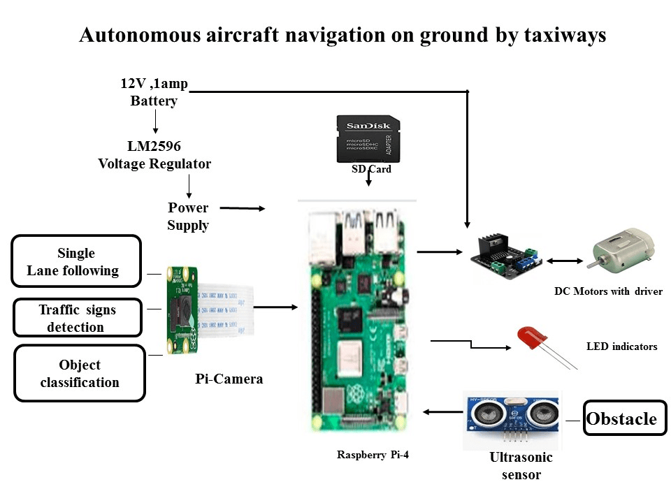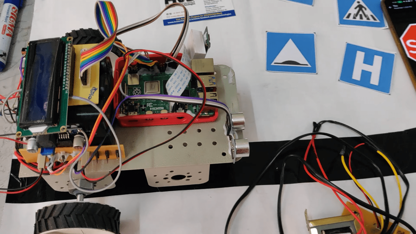 - The robot consists of pi camera and Raspberry pi4 module which is used to detect the singe lane, traffic signs and object classification using raspberry pi4 and OpenCV Image processing.