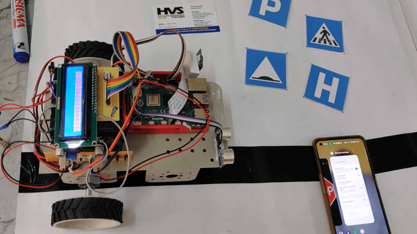 Self-driving vehicle are autonomous vehicles that can drive by themselves without any human interference and has the potential to mark the technological revolution of the next decade. This work presents the development of a low-cost prototype of a miniature self-driving vehicle model using simple and easily available technologies. For safe driving and to avoid accidents, it is important to detect the traffic signs on the road and to take the decisions in real time. The purpose of this work is to build a system that autonomously maneuvers itself on a track by recognizing road signs. In order to do this, it should be able to record the road ahead in real time, and accurately identify the road signs and take corresponding response within the stipulated time.