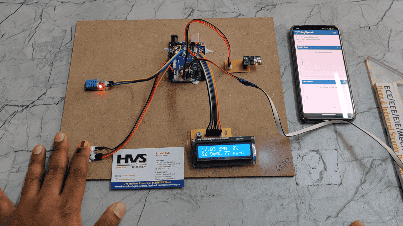 Internet of Things (IoT) based remote health monitoring system have an expansive potential of becoming an integral part of the future medical system. In particular, these systems can play life-saving roles for monitoring of patients with critical health issues. Any health care monitoring system must be free from incorrect data, which may arise because of instrument failure or communication errors. In this project, to detect reliability and accuracy of data obtained by the IoT-based remote health and ambience monitoring. This project makes a use of MAX30100 (heartbeat & oxygen), DHT11( temperature&Humidity), LCD display, ESP8266 Wi-Fi module. The main controlling device of the project is Arduino uno microcontroller. Arduino will continuously read the sensor data and uploads them into the thingspeak cloud along with data and time. And monitoring this sensor values on LCD display. To achieve this task using Arduino UNO microcontroller.