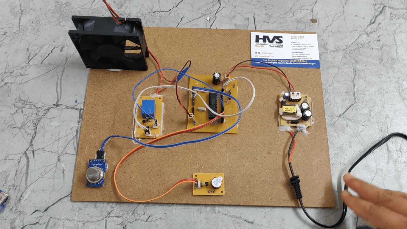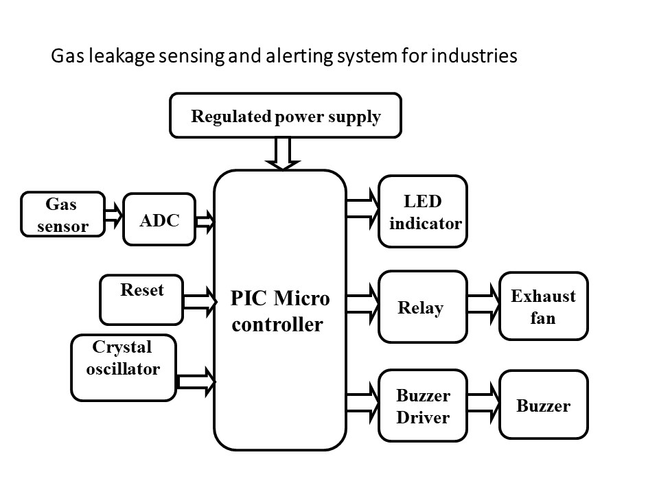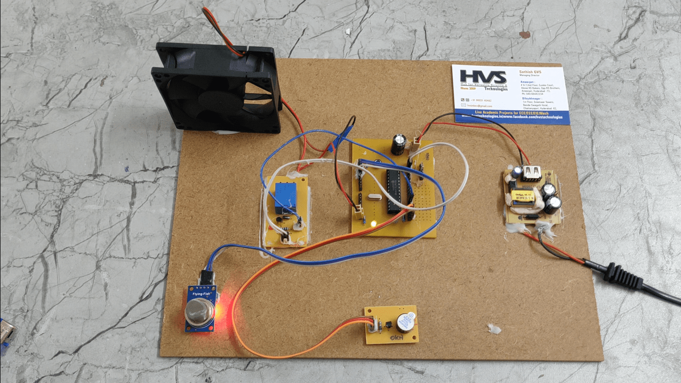 The microcontroller gets the information regarding the leakage of any gas through the gas sensor and alerts about the condition being sensed using Buzzer and turn ON the exhaust fan automatically. By this way we can take the prevention steps before occurring the major fire accidents and we can avoid the human losses and financial losses.