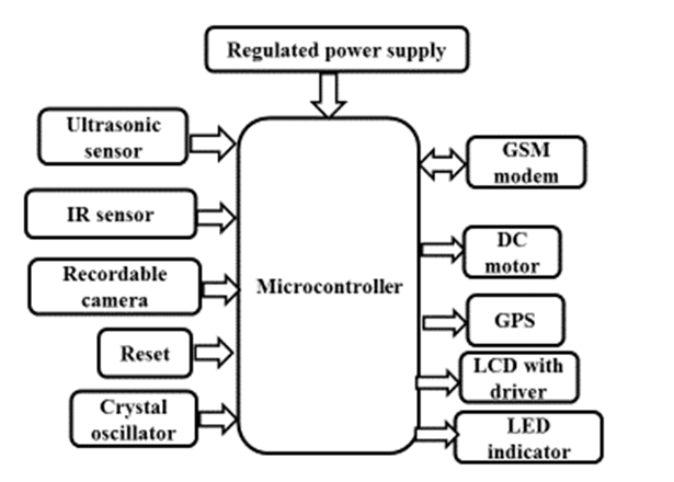 The main controller of the system is PIC microcontroller. The system consists of 6 components, namely, PIC microcontroller, ultrasonic sensors, recordable camera, IR sensor, DC motors GPS receiver and GSM modem. DC motors are used to move in pot holes directions. IR sensor is used to detect the obstacles such as vehicles by transmitting and receiving the light rays to avoid accidents. Ultrasonic sensors are used to measure the distance between the vehicle body and the road surface and this data is received by the microcontroller. Recordable camera used to take images and capture the video. The distance between vehicle body and the ground, on a smooth road surface, is the threshold distance. Threshold value depends on the ground clearance of vehicles and can be configured accordingly. If the distance measured by ultrasonic sensor is greater than the threshold, it is a pothole, if it is smaller, it is a hump otherwise it is a smooth road. The GPS receiver captures the location coordinates of the detected pothole or the hump and sends messages to the registered mobile SIM usingGSM modem.