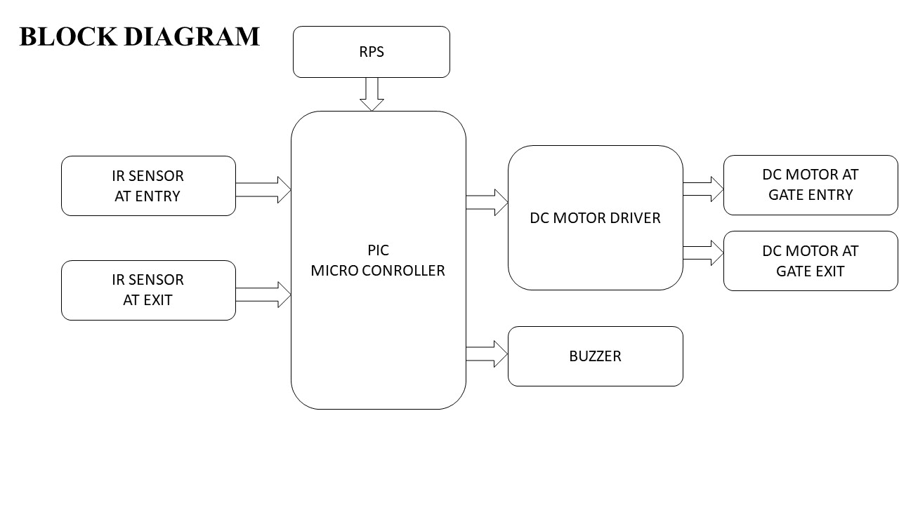 Initially the entry gate is closed. Whenever any person comes in front of the entry gate, the IR RX identifies it since the IR signal gets disturbed. Then the microcontroller opens the entry gate by motor. After some delay, the gate will be closed.