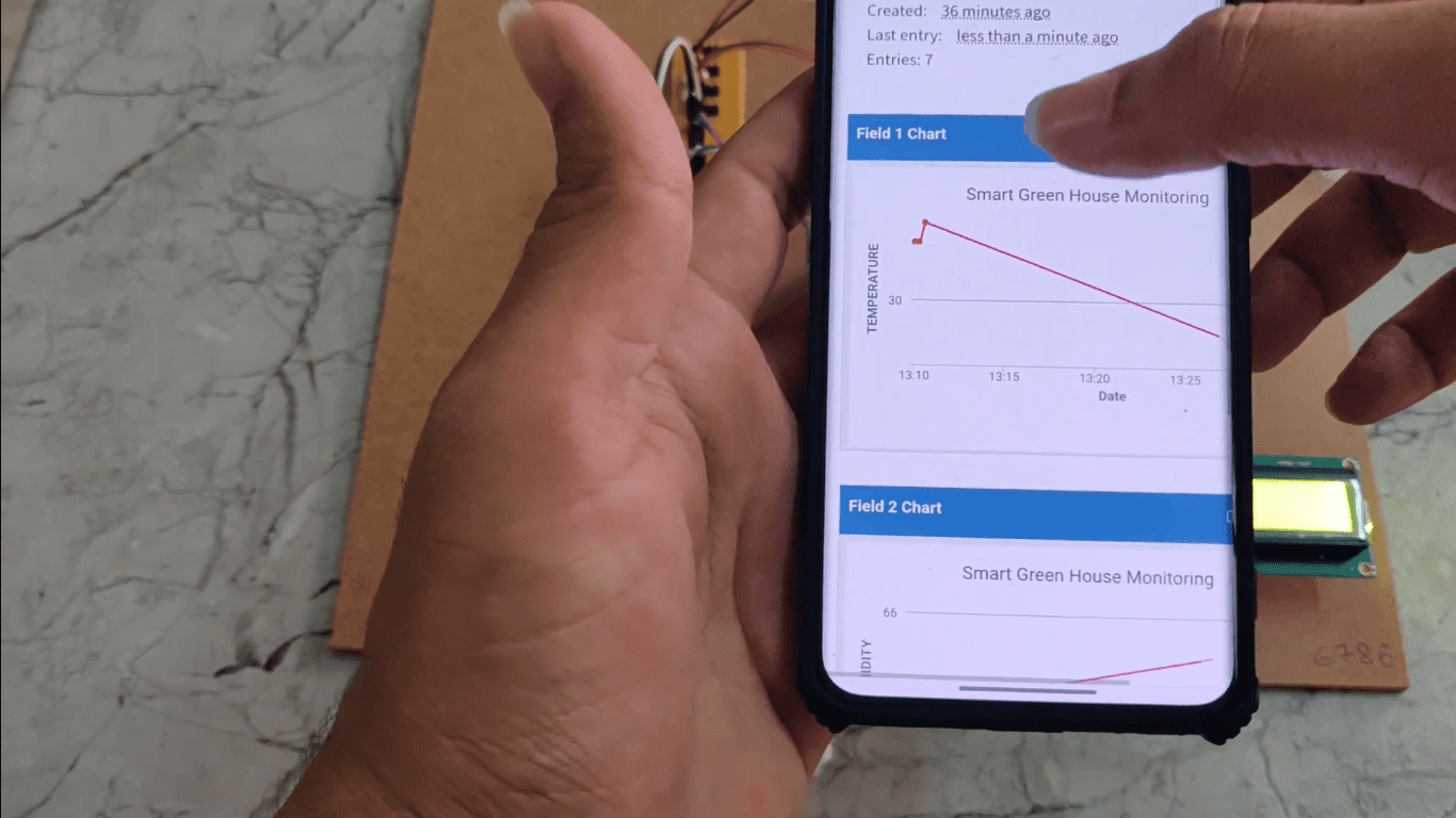 Food security remains a pressing global issue, exacerbated by rapid urbanization, population growth, and climate change. To address this, a smart and cost-effective greenhouse monitoring and control system is proposed, incorporating sensors, actuators, an LCD display, and microcontrollers. Utilizing a DHT22 sensor for temperature and humidity monitoring, and NodeMCU as the primary microcontroller, the system also employs a fan and heater to maintain optimal conditions. Continuous environment monitoring is enabled through internet connectivity, with data transmission and storage on the ThingSpeak cloud, allowing real-time visualization via web or mobile app. This automated system ensures dynamic and continuous maintenance of the greenhouse environment, promoting enhanced crop yields and quality while being easy to deploy and manage​ Smart Greenhouse Monitor.