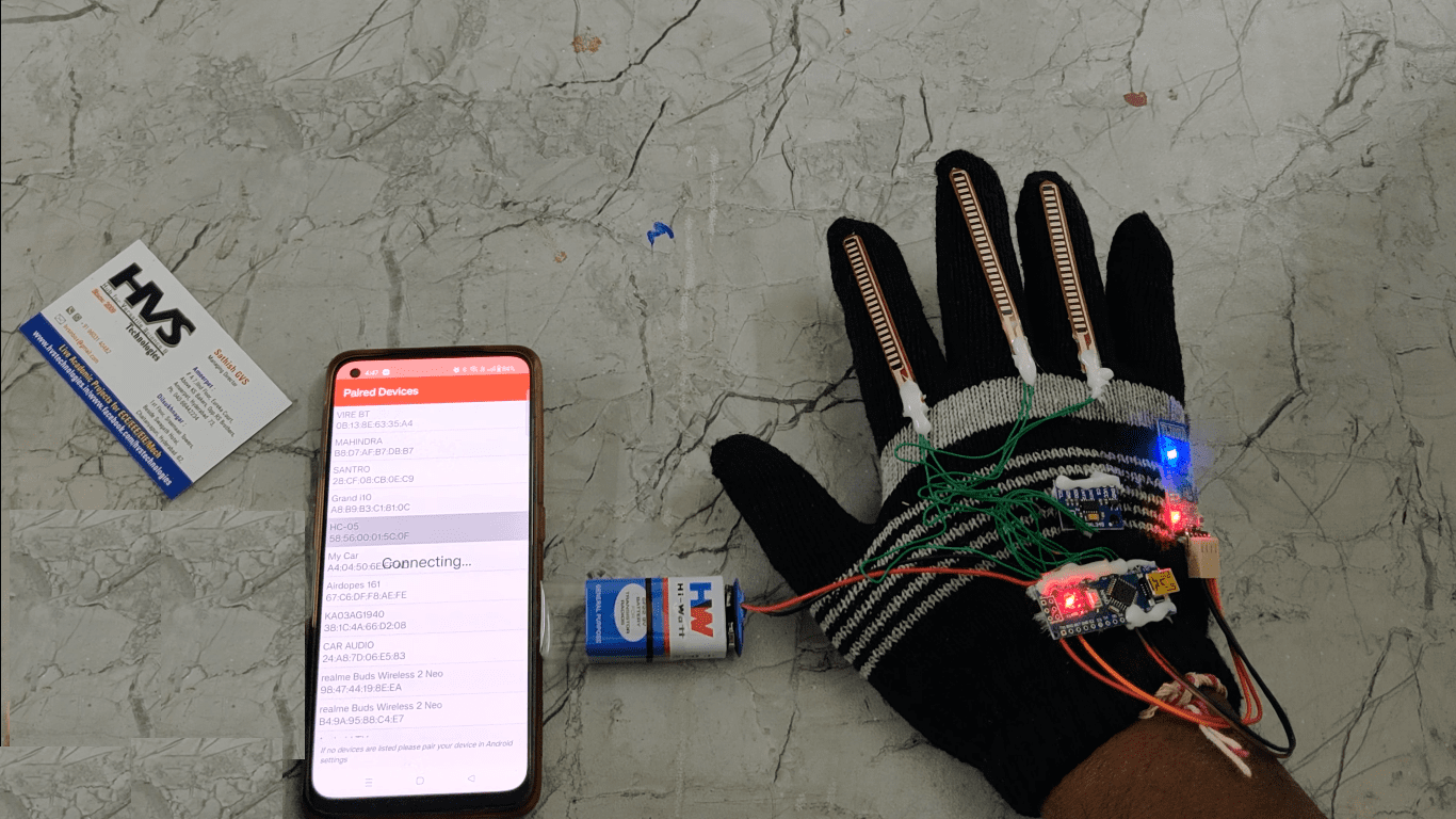 HVS-4517--Smart Glove - Translate Gestures to Text and Text to speech through Bluetooth