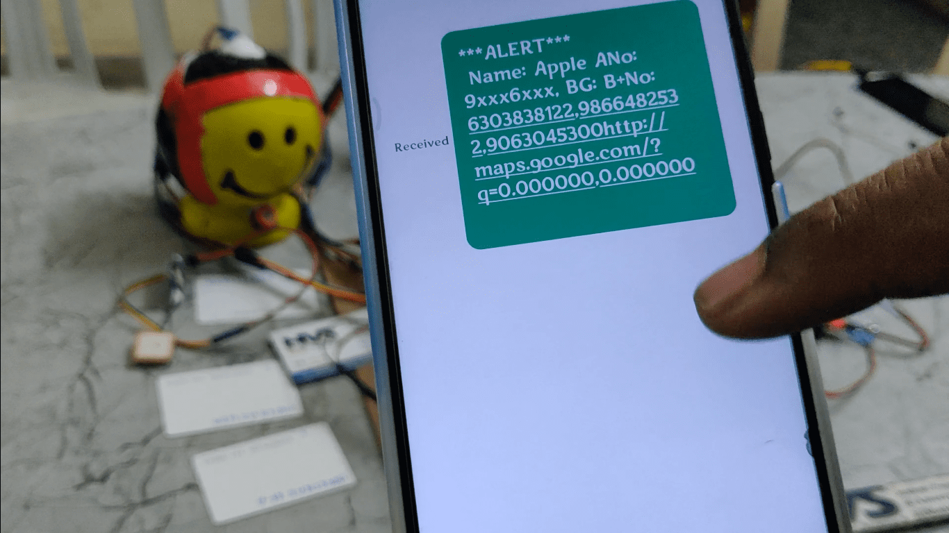 Accident sensor is used to detect the vehicle accident. When the vehicle get accident, the microcontroller will turn on the buzzer three times. After three times buzzer ON, If the person does not press the panic button, SMS along with accident location will be sending to the predefine phone numbers. SMS contains bike rider details like name, phone number, blood group….