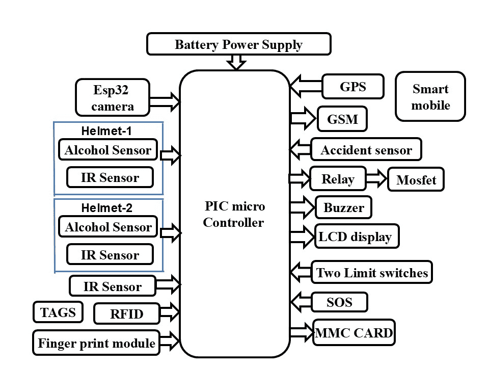 To access the vehicle user should wear the helmet. Helmet consist of alcohol sensor and IR sensor. IR sensor is used to detect weather the person wearing a helmet or not. Alcohol sensor is used to detect weather the person has consumed alcohol or not. If there are two persons on the bike, the vehicle will be accessible unless both of them wear helmets.