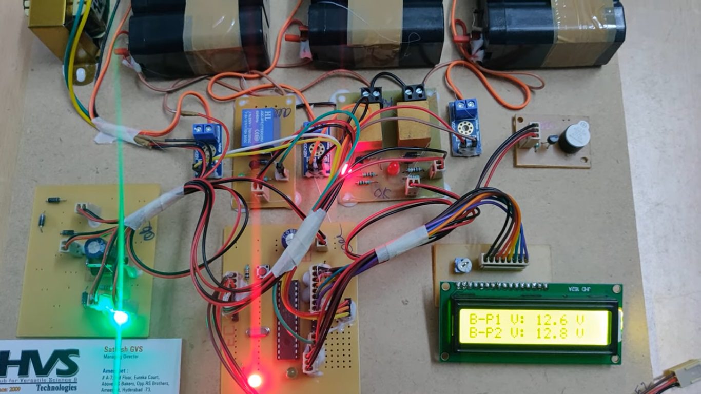 The Microcontroller measures the voltage from sensors and based on that it will switch on the relays for battery charging. Here relay works as a switch to on/off the charging connection. This system monitoring cells’ states, at a particular point in time, is often needed in battery development in order to optimize their use. State-of-Charge (SoC) are key quality indicators as they provide very useful data needed for the optimization of the Battery Management System (BMS).