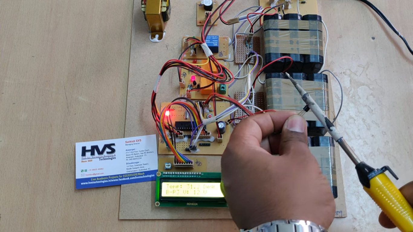 The use of green energy is becoming increasingly more important in today’s world. Therefore, electric vehicles are currently the best choice for the environment in terms of public and personal transportation. Because of its high energy and current density, lithium-ion batteries are widely used in electric vehicles. Unfortunately, lithium-ion batteries can be dangerous if they are not operated within their Safety Operation Area (SOA). Therefore, a battery management system (BMS) must be used in every lithium-ion battery, especially for those used in electric vehicles. In this work, the purpose, functions and topologies of BMS are discussed in detail. In addition, early battery models along with the hardware and system designs for BMS are covered in a literature review. Then, an improved battery model is introduced, and simulation results are shown to verify the model’s performance. Finally, the design of a novel BMS hardware system and its experimental results are discussed. The possible improvements for the battery models and BMS hardware are given in the section on conclusions and future work. The controlling device of the whole system is a PIC Microcontroller. The integrated modules to the controller are LM35 temperature sensor, Battery packs along with relays, Charger and LCD Module. When any of the battery pack get drained, that battery pack get charged from the charger through relay and the voltage values of each battery pack and as well as temperature continuously will display on LCD module If the temperature value crosses the set limit, then PIC microcontroller will active the buzzer for alerts. The Microcontroller measures the voltage from sensors and based on that it will switch on the relays for battery charging. Here relay works as a switch to on/off the charging connection.