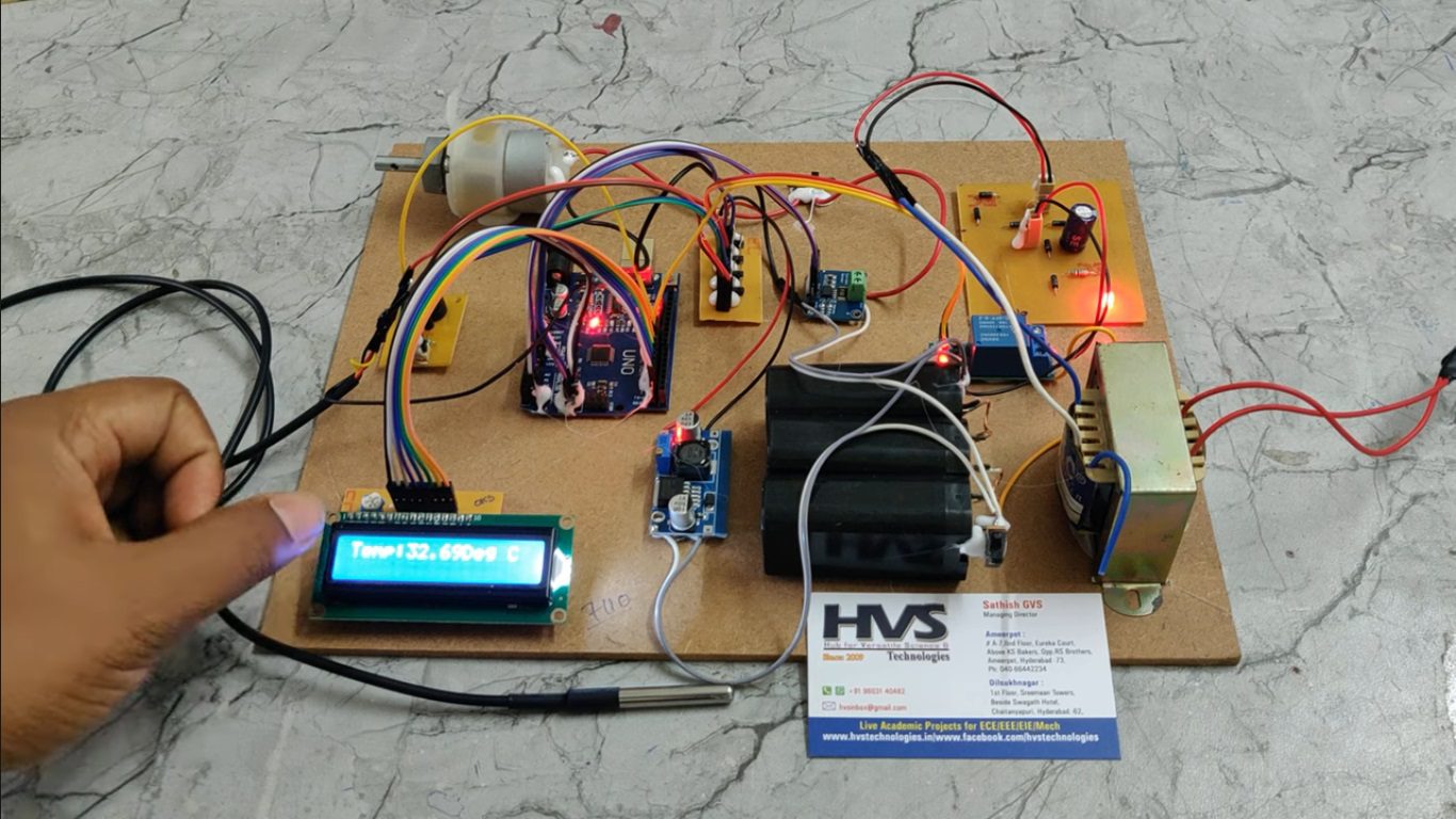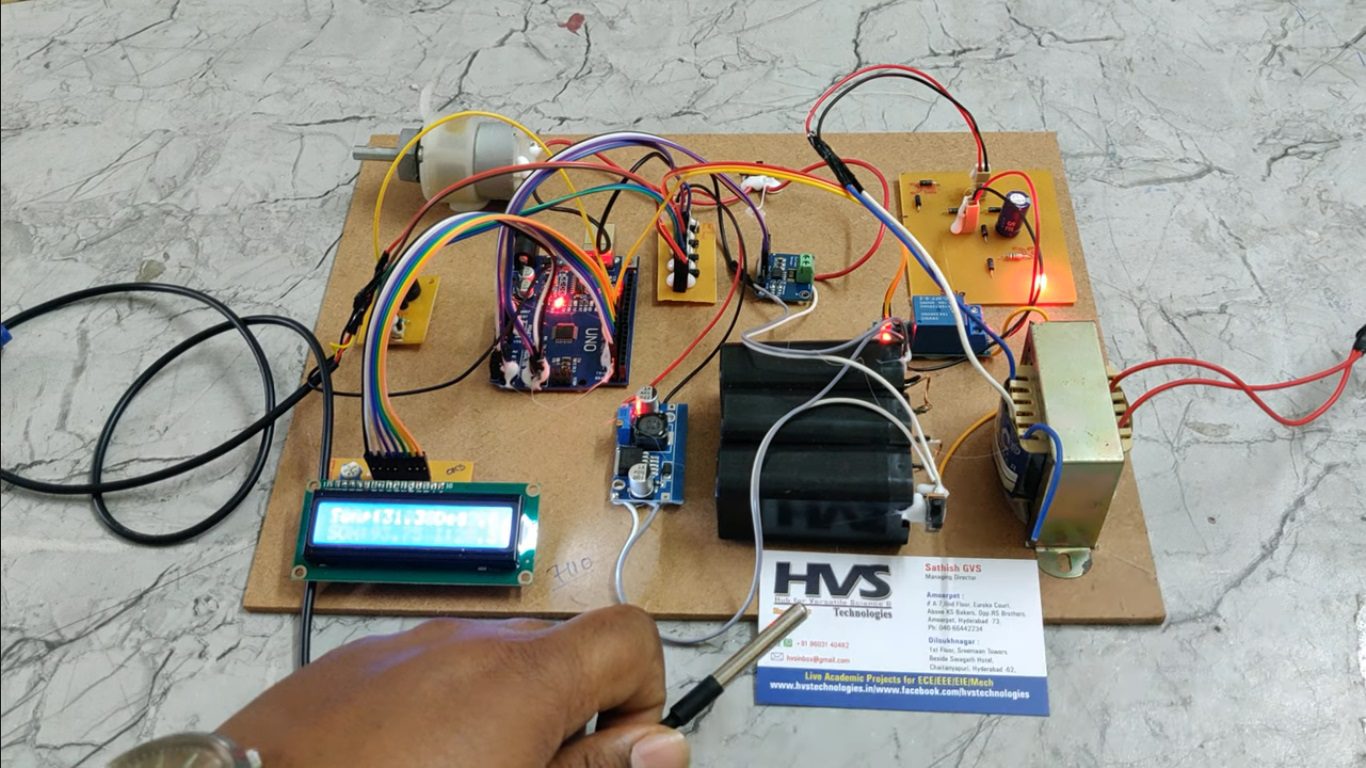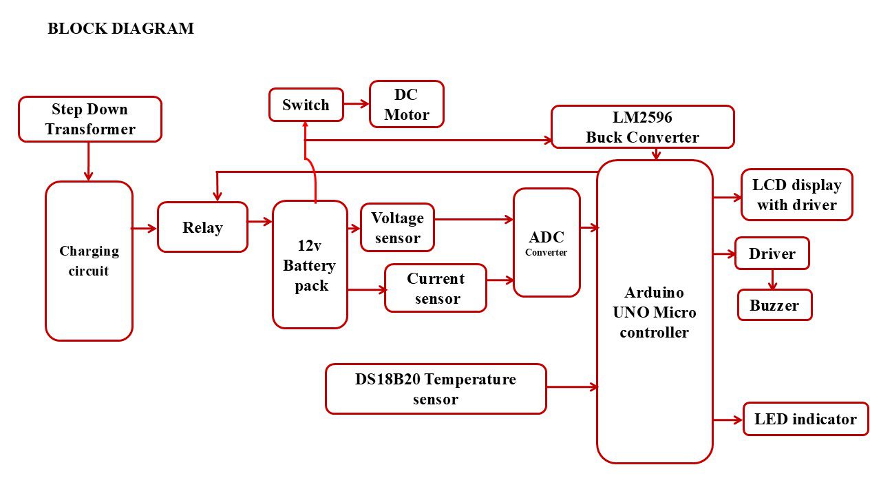 The system also includes protection features such as over-temperature alert using a buzzer, automatic cooling using a fan, and controlled charging through relay. A DC motor is used as a load to simulate real-time operation. This BMS improves battery efficiency, enhances safety, and extends battery life, making it suitable for electric vehicle applications.