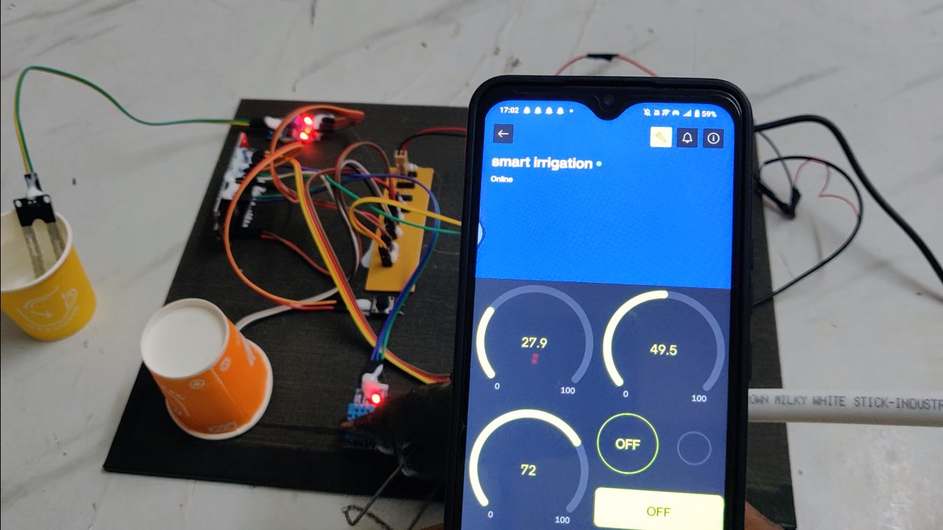 - Blynk up will tell us the feedback of plant monitoring system about sensors data and water pump on/off status and motion detection status.