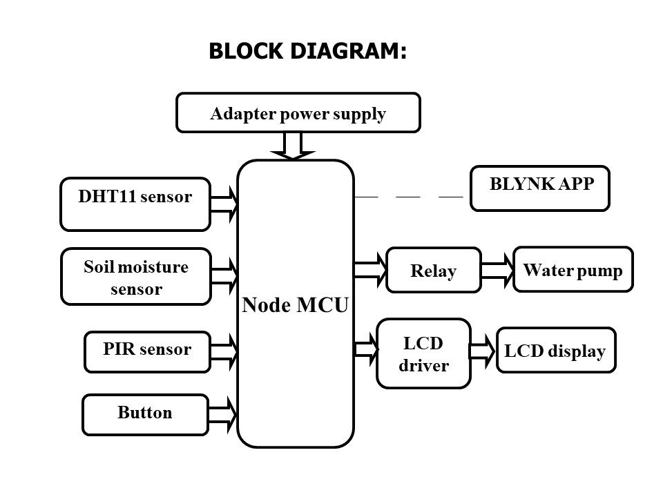 The software’s used are Arduino IDE & Blynk IoT platform. Ardunio IDE is used for compiling and uploading the program to NodeMCU and Blynk IoT platform is used for monitoring the temperature, humidity, soil moisture, Water pump, and motion using sensors and update them into the blynk mobile Application through IOT and also displays the same values on LCD.