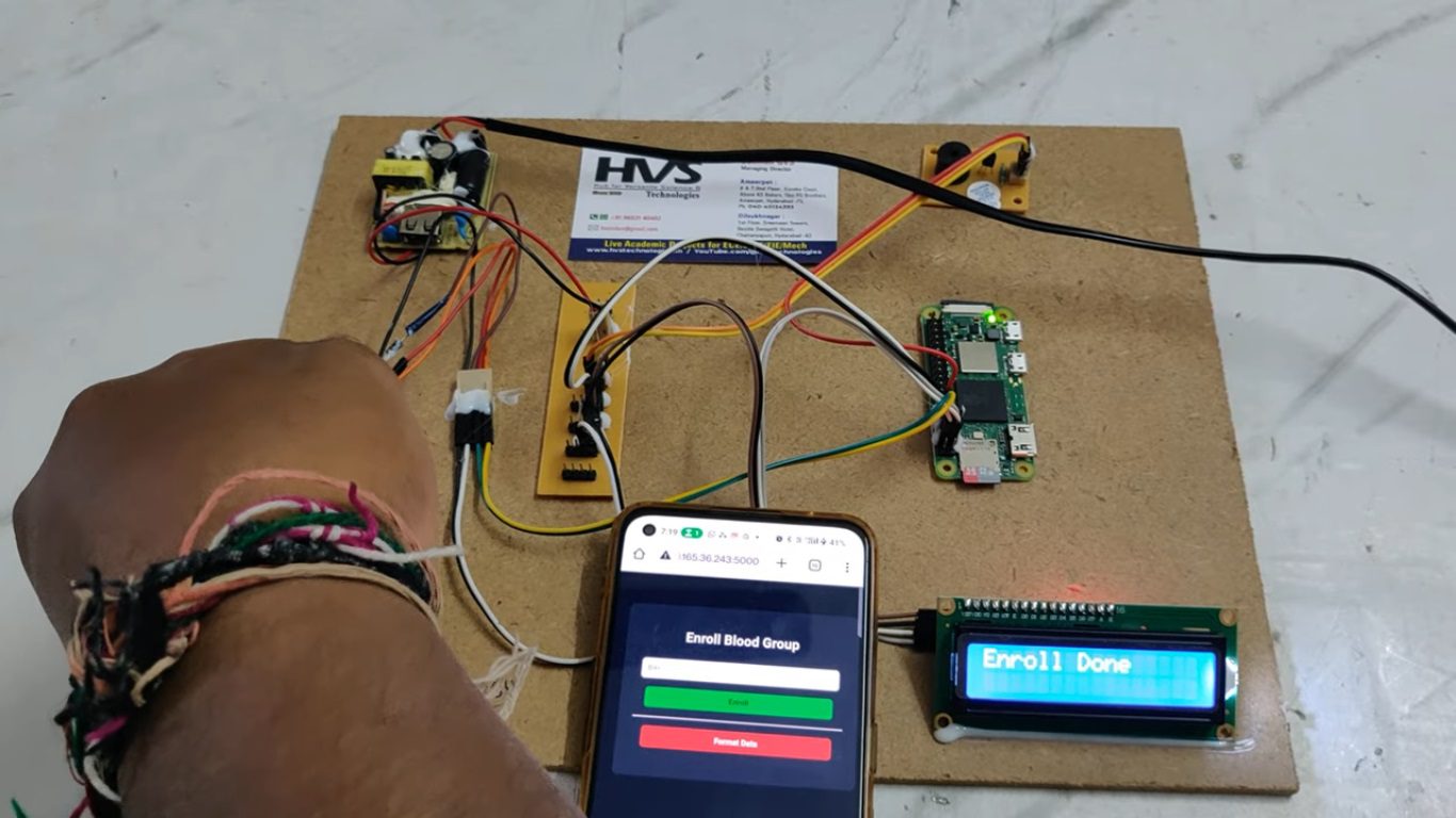This project presents a biometric-based blood group identification system using a Raspberry Pi Zero 2W and an R307 fingerprint sensor.